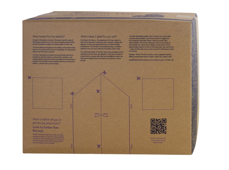 Our large-in-size, good-in-value, great-in-nutrition Timothy Hay is carefully grown in New Zealand's south before being tested and packed to ensure the very best result for your rabbits, guinea pigs, and other happy herbivores.