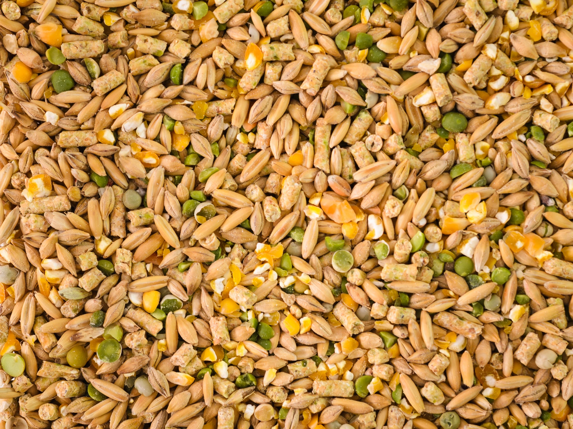 Ingredients: Barley, whole oats, sorghum, kibbled maize, high protein pellets (soya bean meal, peas, broll, vegetable oil).