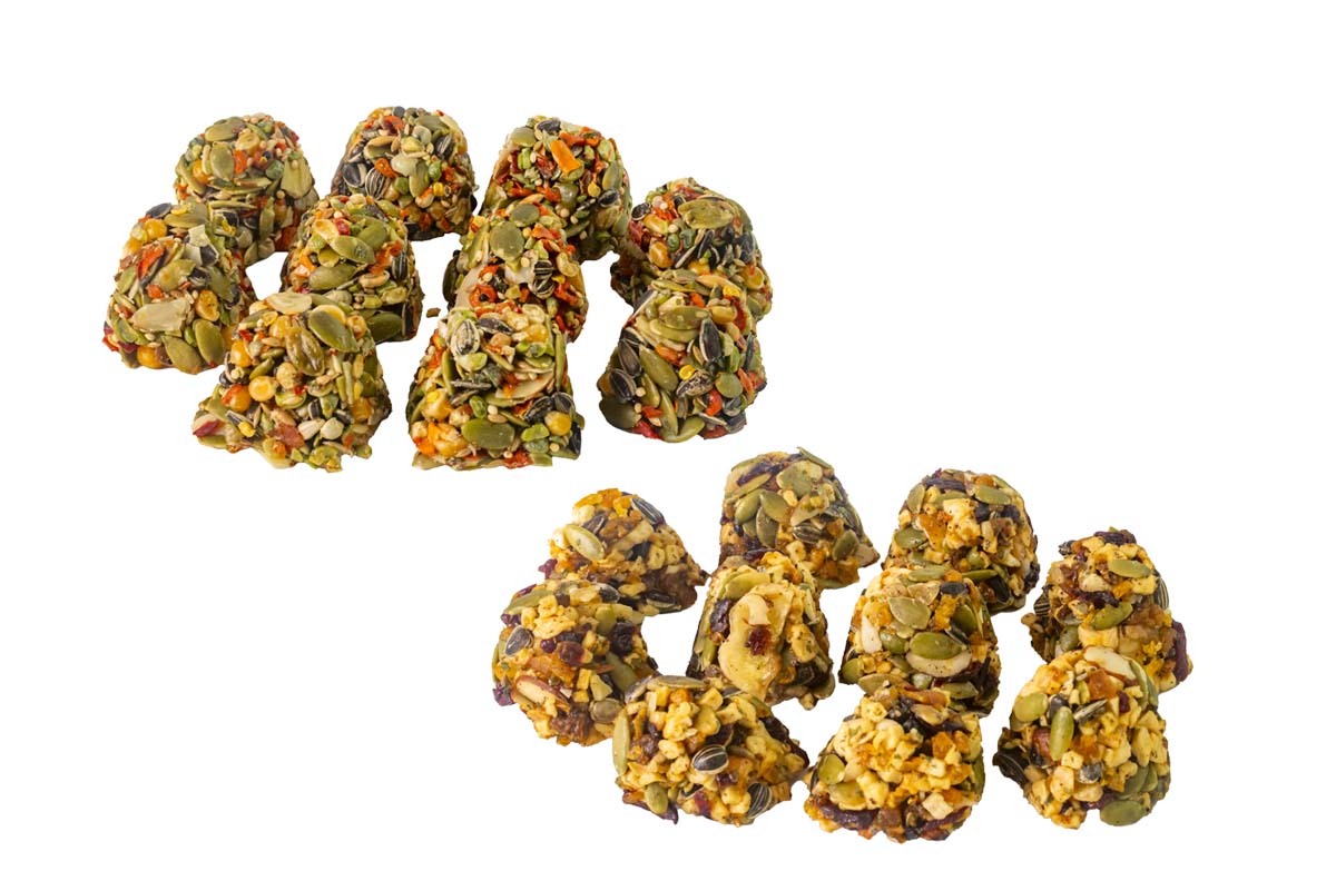 These yummy treats come in two flavours: Tropical Treats & Vital Veggies. Each has been carefully developed to contain a huge range of delicious ingredients - it's no surprise that parrot owners get hungry themselves when getting the treats out for their birds! Importantly too, there are no filler ingredients and no harmful additives. So these treats can be consistently given with confidence (albeit with a limit of one or two a day).