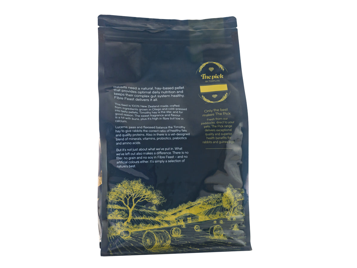 We heard the call for a natural, hay-based pellet that provides optimal daily nutrition for rabbits: Fibre Feast is our answer.
